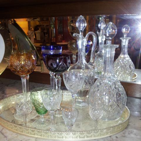 Garrafas e taças de cristal .